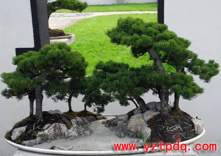 揚州盆景分樹樁盆景、山水盆景和水旱盆景等。特別是觀葉類的松柏榆楓、瓜子黃楊等樹樁盆景,可謂獨樹一幟。揚派盆景受揚州明清時期畫風的熏陶,并受古城造園、養花傳統的影響,形成了自己獨特的風格。它仿效名山大川,借鑒山水名畫,方寸之間,意境闊大。造型嚴謹而富有變化,清秀而不失壯觀。“一寸三彎,功在剪扎”。品種多達五、六十種,在國內外享有盛譽。