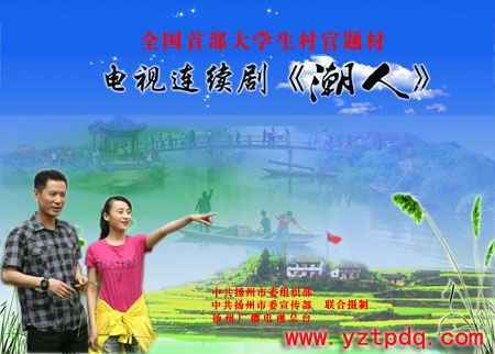 在中共揚州市委的領(lǐng)導下,由揚州市委組織部、市委宣傳部組織拍攝,市廣電總臺投資拍攝的我省首部大學生村官題材電視連續(xù)劇《潮人》,13日起每天17:00至19:30在中央電視臺第8頻道播出,14日起在揚州電視臺新聞頻道19:30至21:50播出。據(jù)透露,由于該劇主題鮮明、內(nèi)容健康、制作精良,有著深刻的現(xiàn)實意義與審美價值,已被中宣部、國家廣電總局確定為慶祝建黨90周年優(yōu)秀電視劇推薦劇目。
