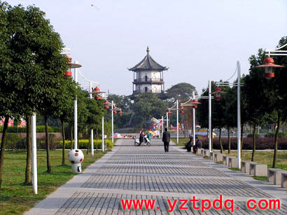 廣場設計遵循“以人為本、以水為源、以綠為美”的原則,注重高郵水鄉的地域特色。在整體布局上采用“一軸二面三點”,即以“景觀主軸線,蝶池小面、蝶園主廣場,入口商業休閑廣場、親水廣場、宋城墻魁星閣古跡”為主體,水上平臺和引橋流水融為一體,使人感受到水鄉特有的水性的滋潤。廣場綠化設計充分體現“花香蝶自來”的意境,種植花草樹木近40個品種,其中有櫸樹、香樟、桂花、梅花、天堂草等,錯落有致。駐足看,廣場綠草如茵,彩蝶飛舞,彩色噴泉千姿百態;徐行聽,流水淙淙,舞曲翩翩,綠樹叢中鳥啼鶯囀,讓人心曠神怡。