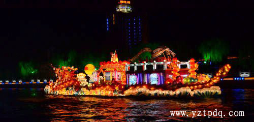 領航花船“揚州號”是所有船只中體量最大的,它首先啟航,駛向夜色中,其他花船隨后次第駛來。記者看到,緊隨“二分明月”揚州號的是“潮涌廣陵”的廣陵號,隨后,“歌吹維揚”的維揚號、“百年冶春”的揚子江號、“明月星輝”的新城西區號、“田園邗江”的邗江號、“山水儀征”的儀征號、“水潤揚州”的水利號、“