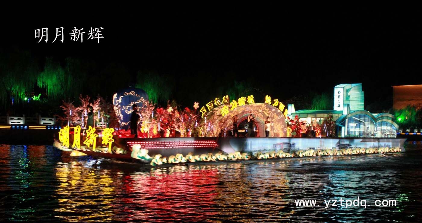 新城西區承制的“明月新輝”號花船,首先映入我們眼簾的是雙博館鎮館之寶“霽藍釉白龍梅瓶”,它是世界舉世無雙的珍稀國寶。瞧,在絢麗的燈光照耀之下,仿佛讓人們有了一種穿越揚州2500年歷史的感覺。