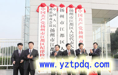 11月16日,迎著冉冉升起的朝陽,揚州市江都區揭牌儀式在行政中心隆重舉行。隨著中國共產黨揚州市江都區委員會、揚州市江都區人民代表大會常務委員會、揚州市江都區人民政府、中國人民政治協商會議揚州市江都區委員會、中國共產黨揚州市江都區紀律檢查委員會的揭牌,江都的發展掀開新的篇章。