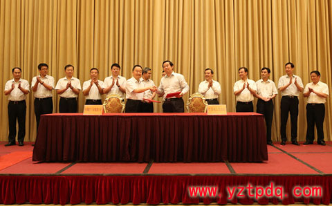 7月1日上午,江蘇省政府與中國航空工業集團在南京簽署了《關于寶勝集團有限公司項目合作框架協議》,同時,揚州市政府與中航工業全資子公司中航機電系統有限公司正式簽署《重組寶勝集團有限公司協議》。根據協議,中航工業將重組寶勝集團,共同打造國內領軍、國際著名的大型企業集團,并將在我縣建設航空產業園。省委常委、常務副省長李云峰,中航工業集團公司總經理譚瑞松出席簽約儀式并致辭。江蘇副省長史和平、揚州市委書記謝正義,中航工業集團公司黨組成員、紀檢組長孫衛福,江蘇省經信委主任徐一平、江蘇省國資委主任周建強等省相關部門負責人,揚州副市長聞道才,寶應縣領導王炳松、王庭國、周玉寶等出席簽約儀式。