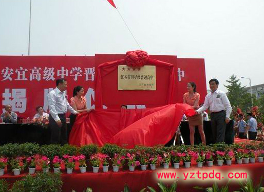 寶應安宜高級中學歡歌笑語,彩旗招展。一場盛大慶典,宜中晉升“省四星”級高中揭牌儀式在校園內隆重舉行。在創建四星級學校的濃熱氛圍中,學校環境優美,充滿生機,到處一片“園林化、生態化、人文化”氣息。其發展速度之快,令人驚喜。