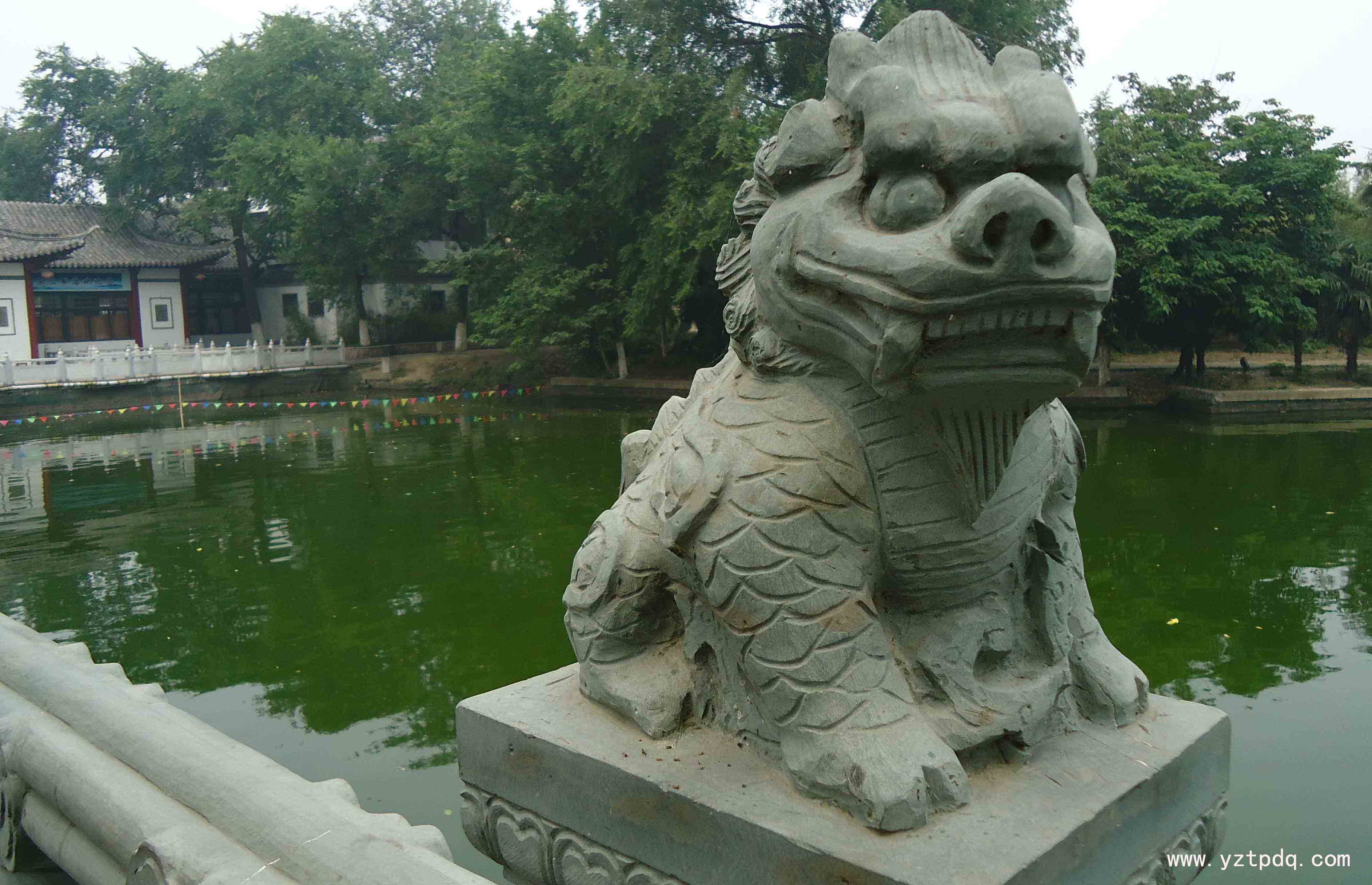 石獅又是幸運的,在“文革”中,在那個所謂“破四舊”的動亂年代,寶應有好心人,不知以什么樣的理由,將石獅一家埋于地下,使其免于一劫。改革開放的年代,在城市的擴建筑路時,這對石獅又被挖出。神奇的是,除了幼獅的那條斷腿外,它們毫發無損。人們象迎接神獸一樣,將它們移至古城最佳風景區縱棹園大門口。