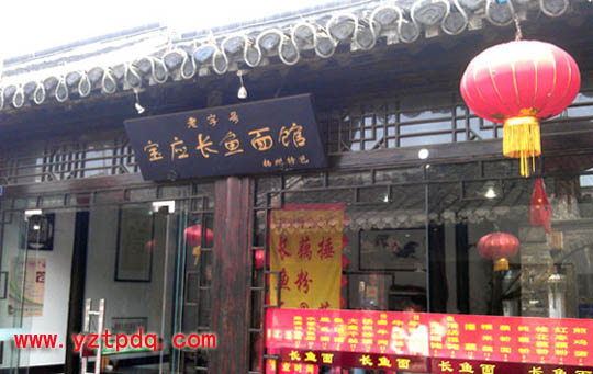 揚州東關街的長魚面館是一個地道寶應氾水人開的夫妻店,兩年前他們勇敢地把寶應長魚面的牌子掛在揚州東關街,成為揚州開寶應長魚面館的第一人。揚城的面館隨處可見,各種配料的面味道都很好,價格也不貴,都 有固定的人群。要讓寶應長魚面在東關街立足實屬不易。這兩位執著的寶應人,他們堅持從寶應進野生鱔魚,堅持使用寶應當地作坊用壓榨方法生產的油(成本比寶應當地的還高),每天堅持六個小時的時間熬湯,熬湯用的不銹鋼湯桶都熬壞了許多只。他們本本分分的做事,認認真真地下好每一碗面。這里沒有電視廣告的宣傳,只有吃過他一碗碗面的人的口碑,始終如一的堅持質量,任何人任何時候來吃味道都一樣。許多偶爾來店吃過長魚面的人,以后就成為該店的常客,還會主動介紹給身邊的朋友。如果你去過揚州東關街的長魚面館,你還會發現這里客人的不同之處,他們注重營養注重美食,由于互相常見面,還會互相招呼聊一聊,非常和諧。有的比較遠的還介紹自己吃面的方法:分開打包帶回放在冰箱里,可一周來兩次,味道不變;有的它帶回去作為一道主食,為家宴增色不少。兩位店主閑暇時也會旁聽,但從不插話,如你需要問他們有關問題,你會得到不加渲染的回答,這也可能是寶應人的質樸。