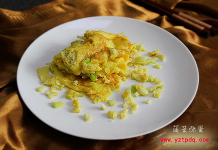 這道菜的關鍵在選料和火候,一定要選最鮮嫩的蒲菜芯;中火攤到雞蛋餅略微變色即可出鍋,攤老了蒲菜失去水分,清新的汁液和脆爽的口感會流失。