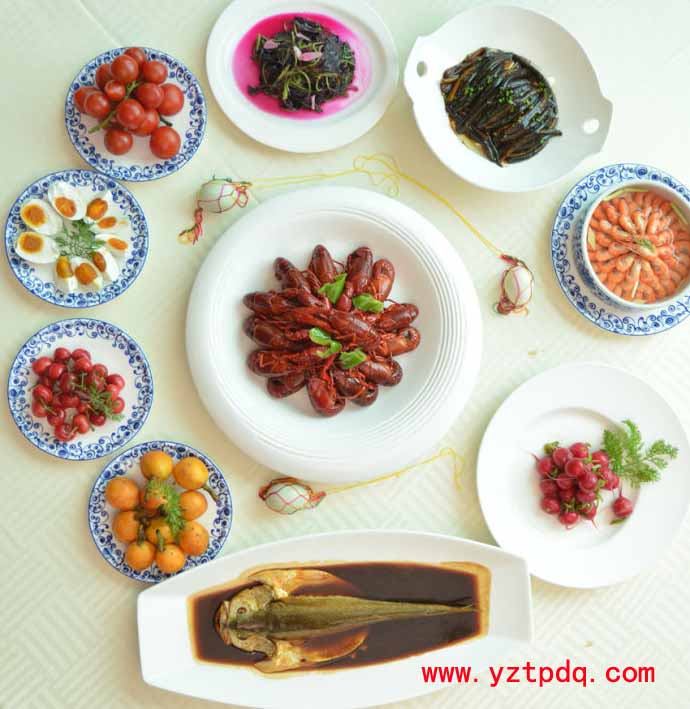 在端午“十二紅”當中,還有兩道菜不可或缺,一是紅燒老鵝,再有就是大公雞,意在雞冠為紅色,然而今年的端午有些特別,春時露頭的一場禽流感使得江浙滬一帶禁止銷售雞鴨鵝,餐館酒店里也見不著禽類的蹤影。好在民間的智慧無窮,在拍攝制作這一期端午十二紅時,想到用橫掃揚州整個夏天的小龍蝦來替代。至于民間的十二紅,豐儉由人,只要那么關鍵的幾樣,心意到便好。