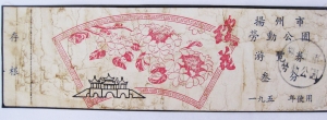 葛國祥收藏的另兩張瘦西湖門票,是1957年公園剛剛更名為揚州瘦西湖公園時的門票,一張是面值為5分錢的“壹人票”,另一張是面值為1角的“貳人游覽票”。
