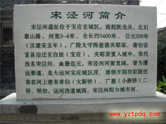 宋涇河,是古運河的一部分,至今已有二千多年的歷史。唐武德四年(621年),安宜縣治遷入白田(即今寶應城)之前,運河從邗溝經射陽湖,沿漢陳登開筑的夾耶貫穿鎮中。隋初又開通了大業邗溝。