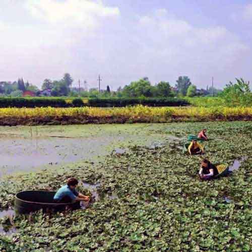 于是,南來北往的官員客商,旅人,無不在此時此地停留。他們或駐足觀賞,或爭購菱角,成為一種時尚。不僅如此,鎮上十多家“八鮮行”,也備足資金,批量收購,將邵伯菱銷往滬寧一線。更有浙江紹興一帶客商,將邵伯菱加工成淀粉,銷至東南亞一帶。由是,邵伯菱更是馳譽天下。鮮放后,國務院辦公室也曾專門將邵怕菱種放養到中南海內,供中外佳賓觀賞,品嘗。